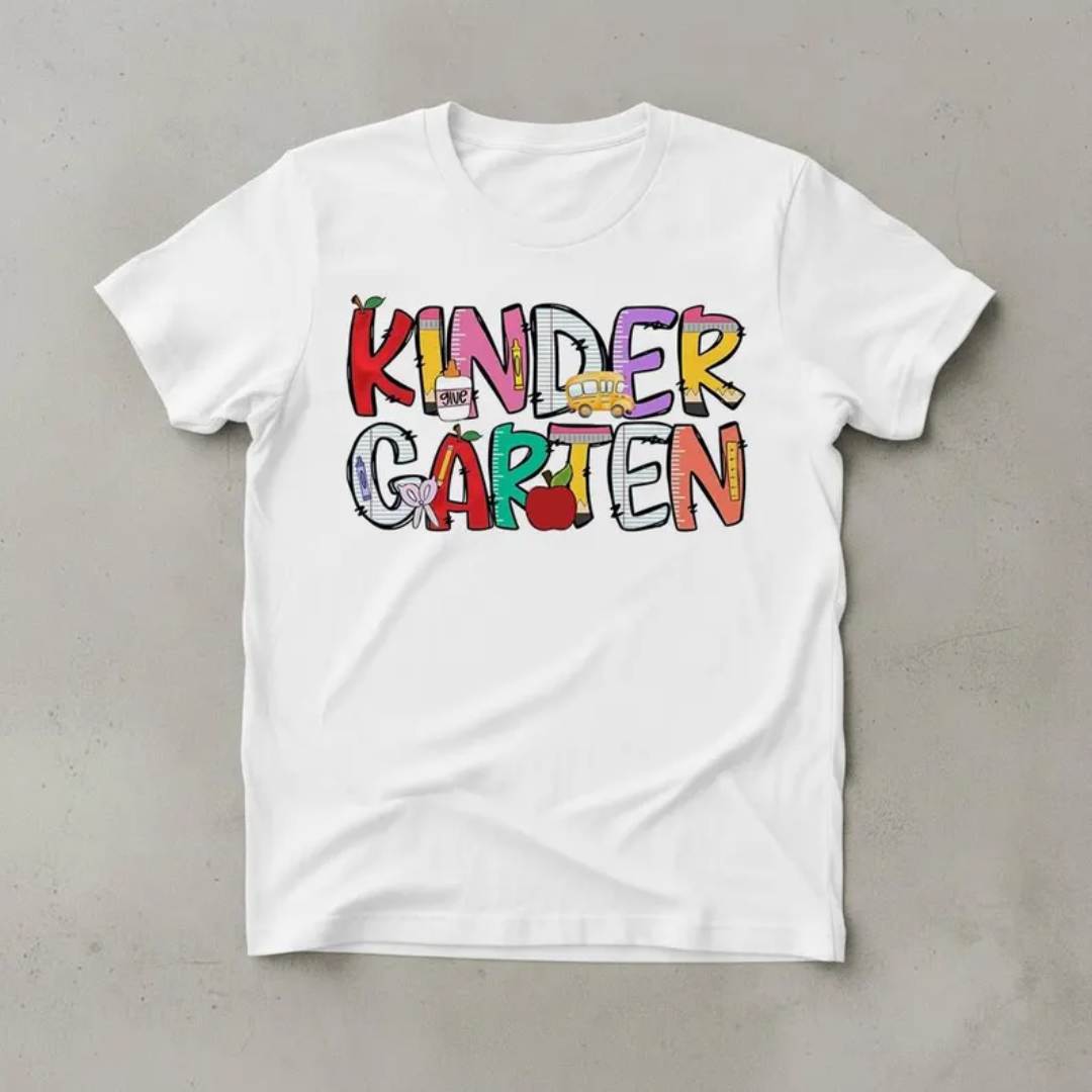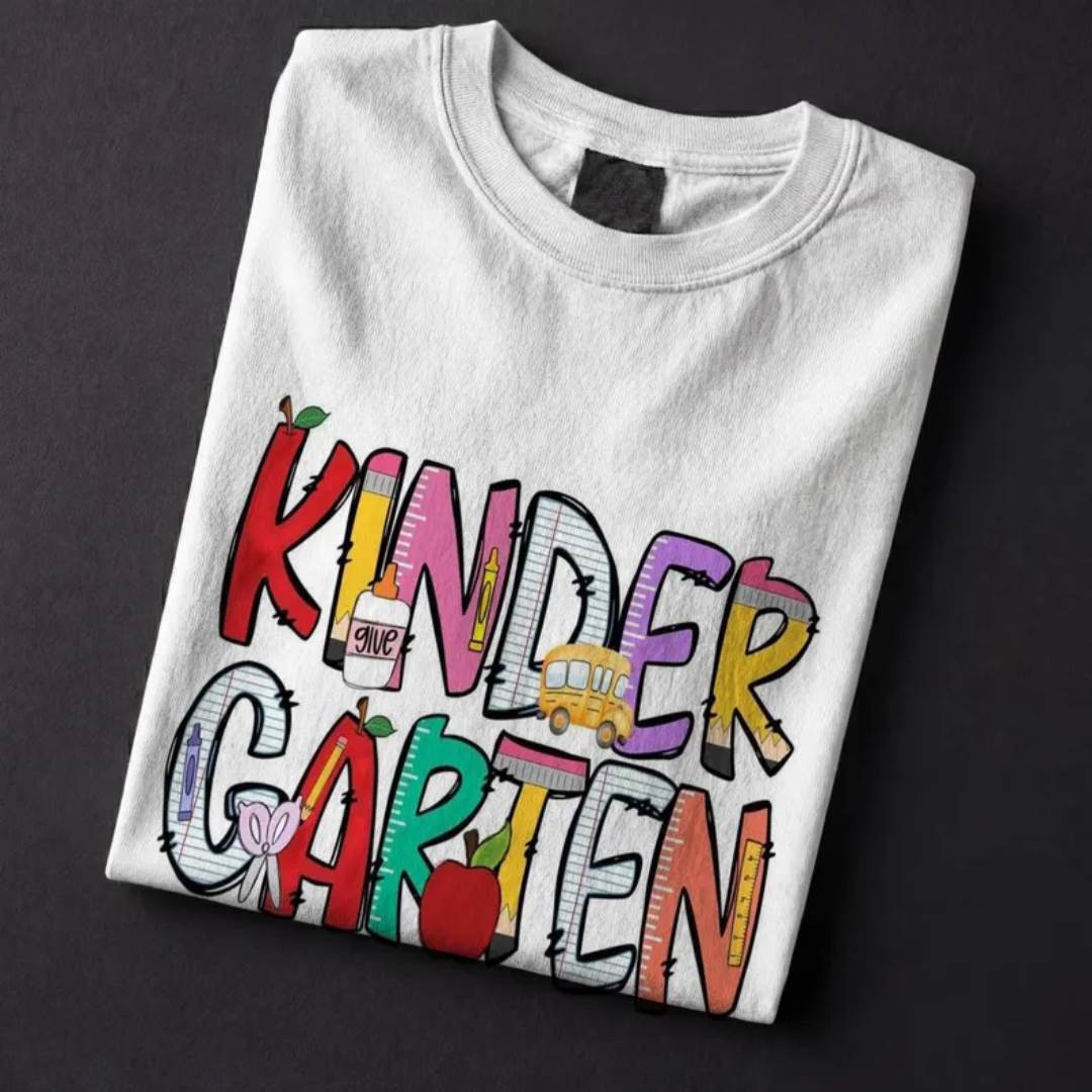 Kindergarten Teacher T-Shirt: Colorful School Icon Design